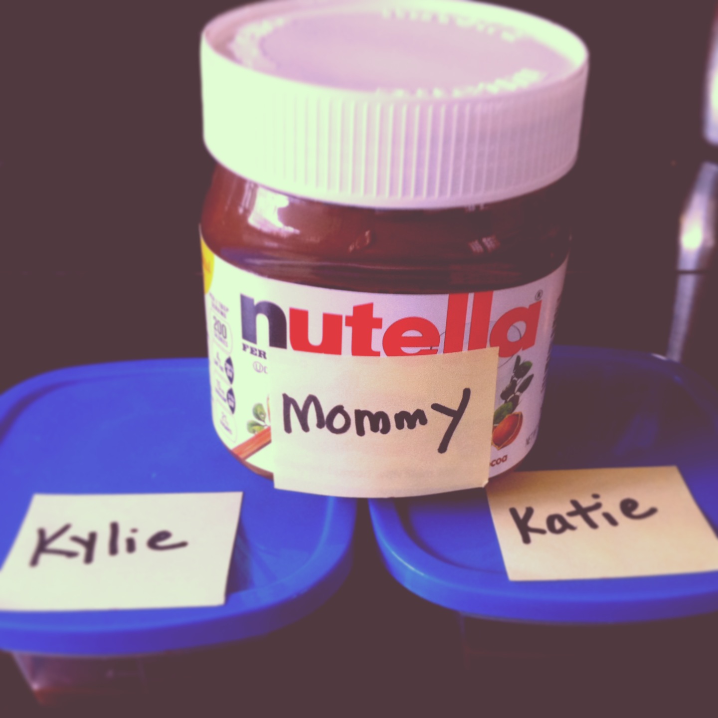 One Nutella jar, divided into thirds and labeled … that’s how this works.