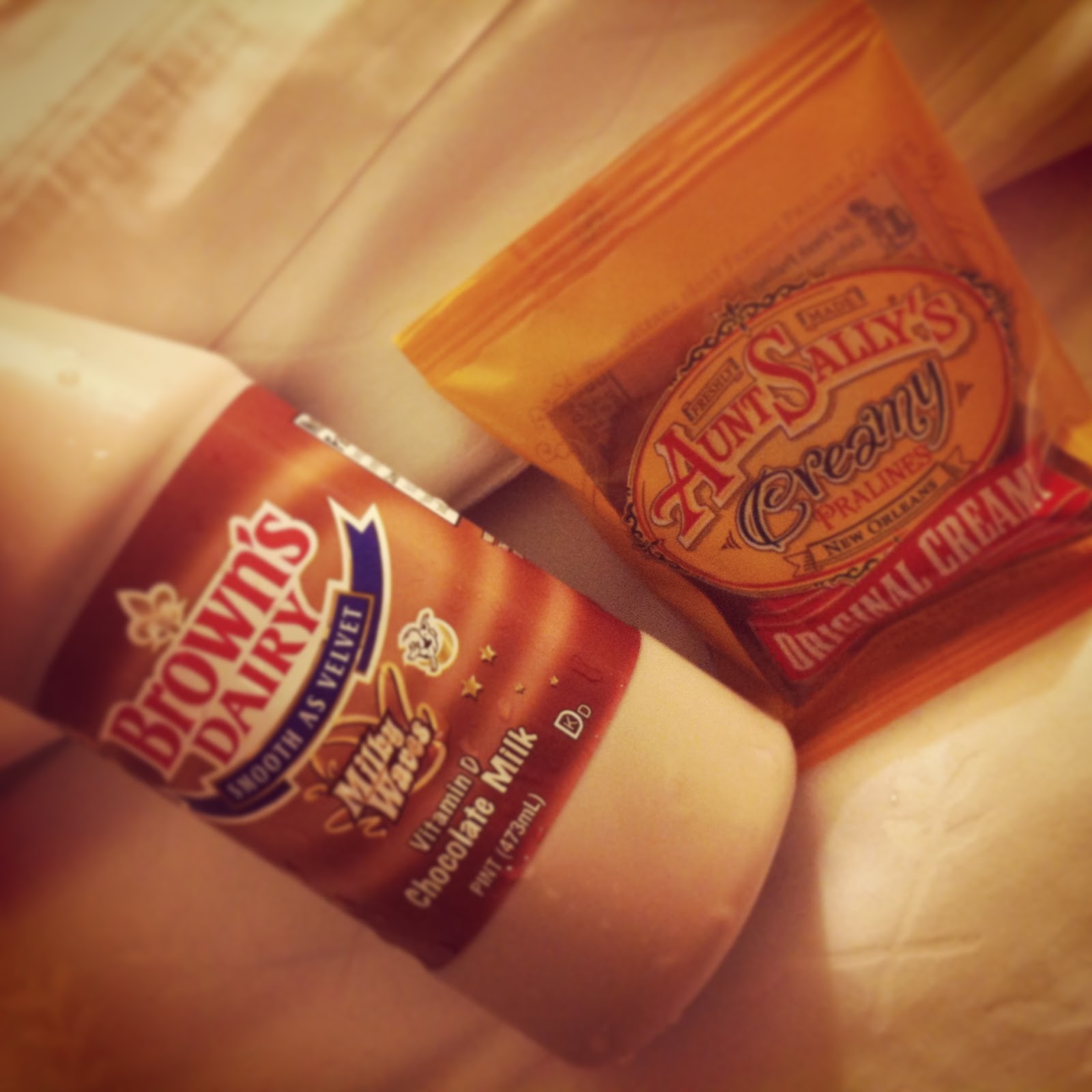 Dessert back at the hotel … chocolate milk, pralines, and season finale of “Survivor.”