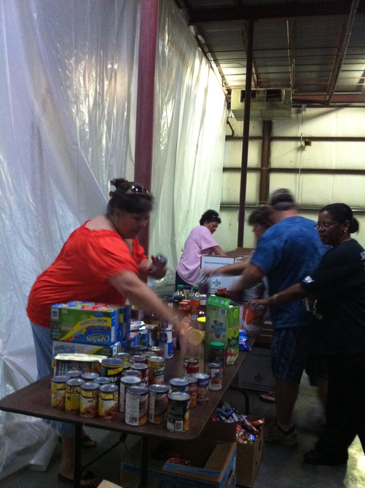 After we had donated our almost 600 lbs. of peanut butter and jelly from one of our women’s ministry events, this group volunteered their time to package food boxes for needy families. These people meant business. We packaged 2 palettes of food boxes (stacked 5 high) in 2 hours. We used all the food they had that was ready for packaging. The great thing about this was knowing that the boxes we packed would be delivered to needy families today all over our state and possibly country.