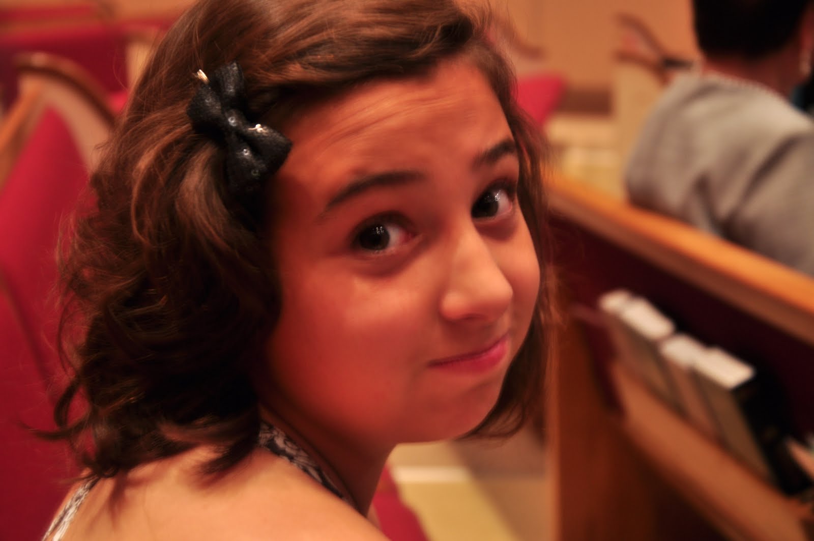 And, this is just the best picture of the day. Cutie patootie La Petite Belle waiting around for graduation to start and begging me to play on my phone.