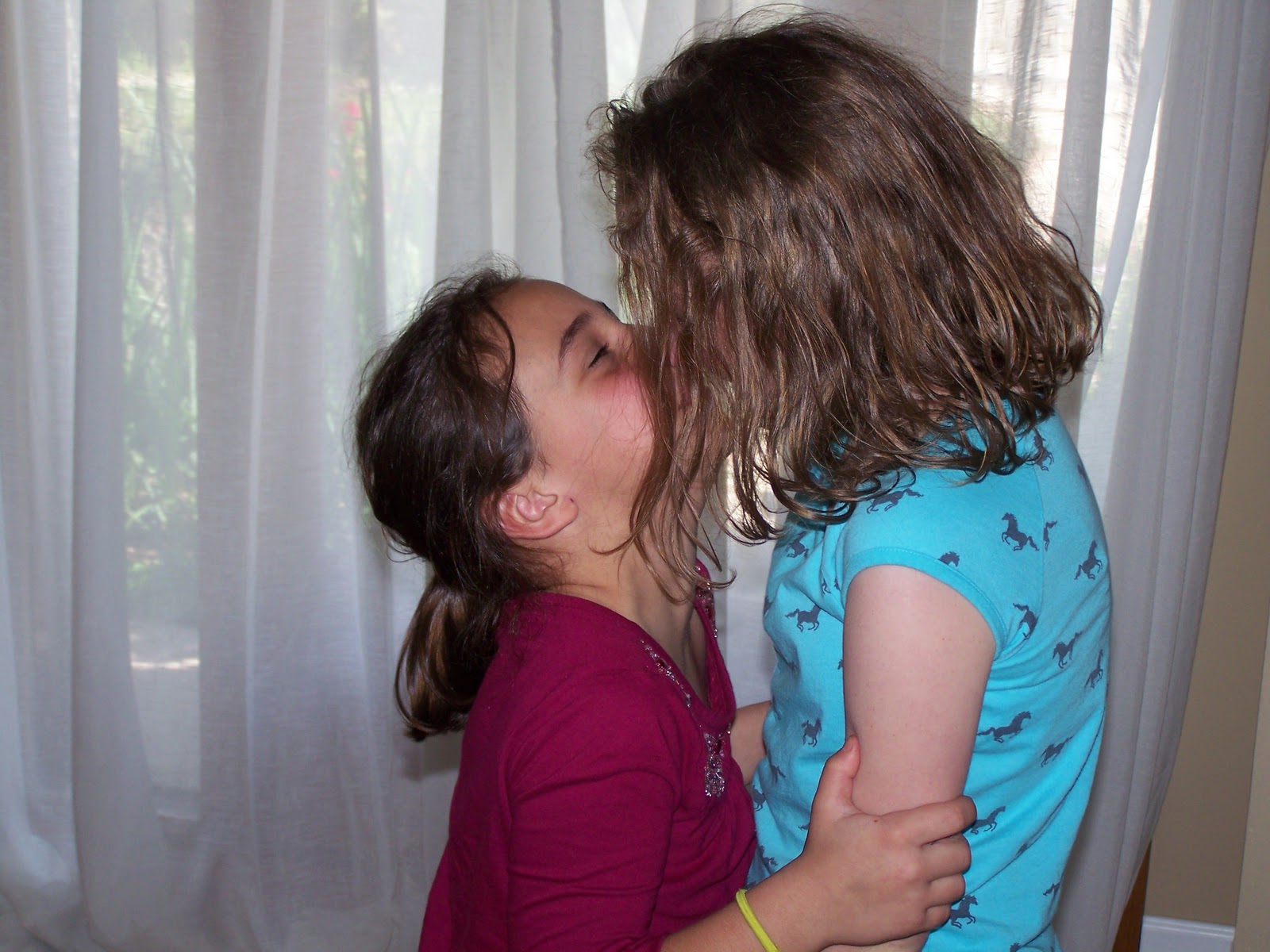 One of our punishments of kissing, lips touching, for as long as we say (after fighting)