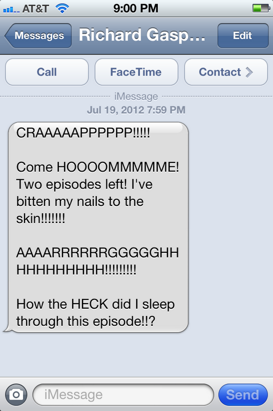 So last night I was out and received this text, after he re-watched the episode he fell asleep during the night before: