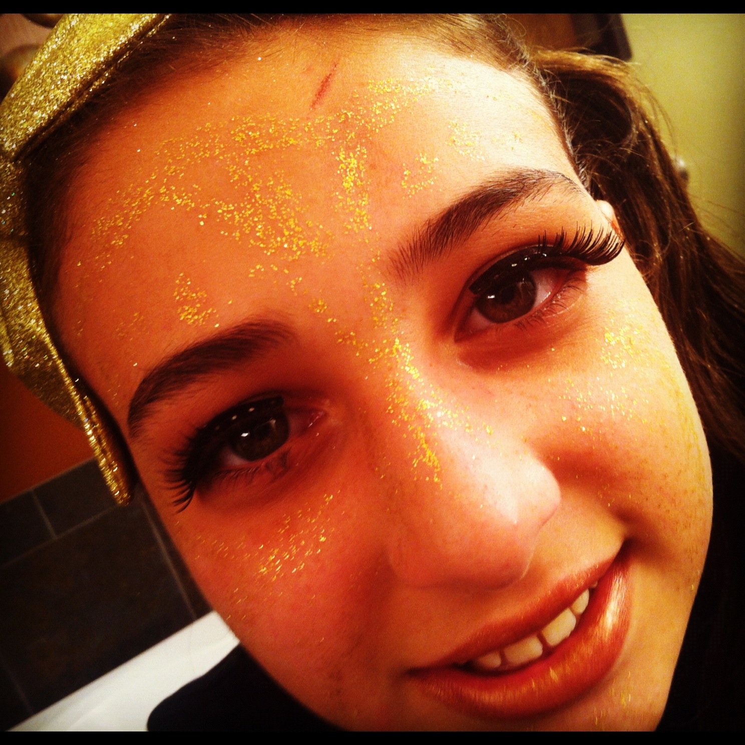 She even had gold sequins on her eyelashes.)