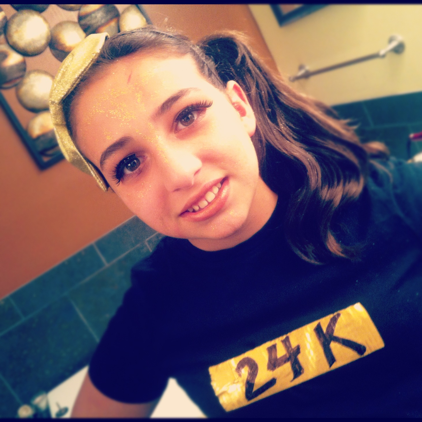 (Pictures don’t do her justice. She was doused in gold glitter spray and make-up.