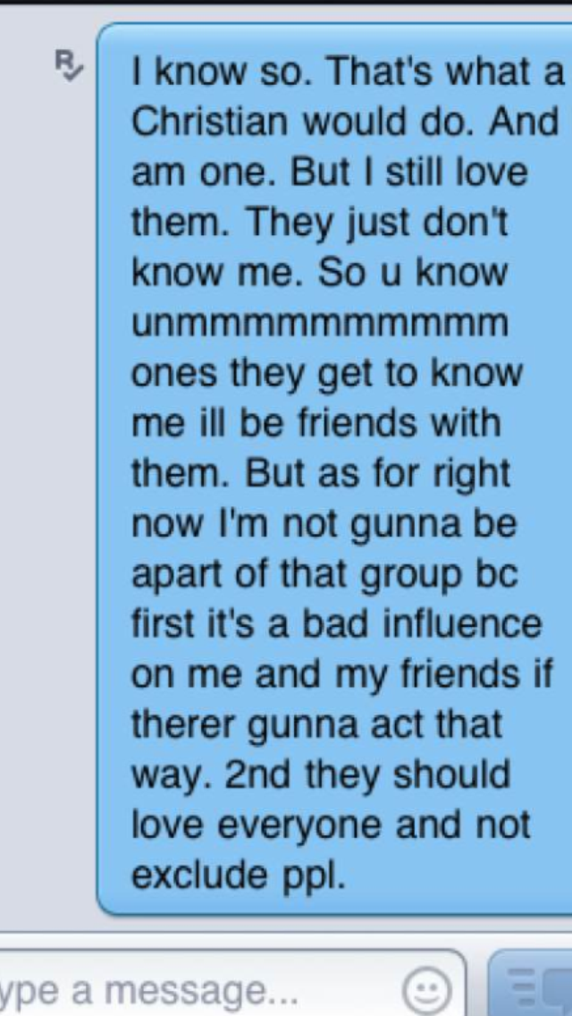 I know that her heart was hurt. I know that she desires friendships. But, she handled this in the best way she could have. I would have handled it the exact same way (except for maybe a punch to the face, but that would nullify the “Christian” part … darnit!).