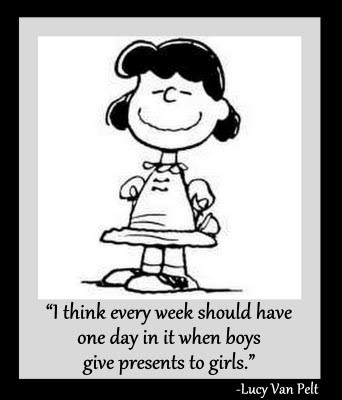 Daphne, we might have a little more in common than I originally may have thought. LOL! I may or may not be a "Lucy" too. Can't wait to see the production! And for the day when boys give presents to girls one day each week!